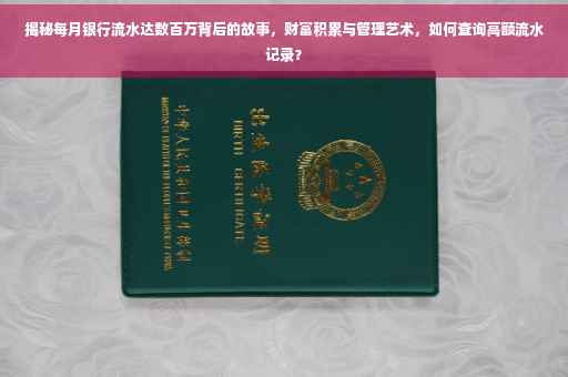 摘要:,,本文将揭示每月银行流水达数百万背后的故事,探讨财富积累与管理的艺术。通过深入了解银行流水的查询方法,揭示如何追踪和管理巨额资金的流动。本文将介绍相关的金融知识和技巧,帮助读者更好地掌握个人财富管理的能力,实现财务自由。