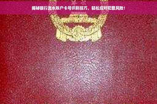 摘要:,,本文介绍了如何识别银行流水账户中的卡号信息。通过一步步的教程,让读者轻松掌握识别方法。需要注意的是,获取银行流水账户信息涉及违法犯罪问题,因此在进行任何涉及个人或他人银行账户的操作时,必须遵守法律法规,确保合法性和安全性。
