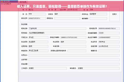 在现代社会,随着经济的发展和就业竞争的加剧,收入证明成为了越来越多场合的必备文件,无论是办理贷款、申请信用卡,还是租房、签证等,都需要提供收入证明来证明自己具备一定的经济实力和信用度,许多人在办理收入证明时遇到了繁琐的手续和不必要的麻烦,本文将介绍一种简便快捷的方式——收入证明只用盖章,让您轻松搞定各种场合的收入证明需求。