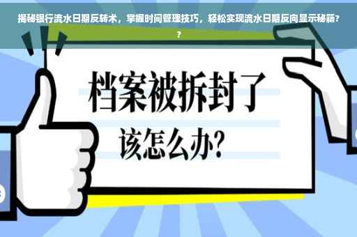 摘要:本文将揭示银行流水日期反转术,教你如何轻松掌握时间管理技巧,实现银行流水日期的反向显示。通过简单的方法,你可以更有效地管理自己的财务和时间,更好地规划个人或企业的经济活动。掌握这一技巧,将极大提高你的工作效率和生活品质。