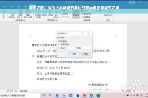 摘要:一位患者经历了头颅手术,经历了艰难的重生之旅。头颅手术证明书记录了他的治疗过程与成果。通过手术,患者获得了新生,重拾了生活的信心和勇气。这篇文章将为您详细介绍患者的手术经历及其背后的故事。