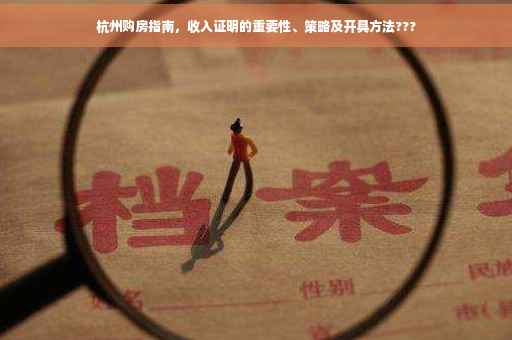 随着杭州经济的蓬勃发展,越来越多的人选择在杭州购房安家,在购房过程中,收入证明成为了不可或缺的一环,本文旨在深入探讨杭州购房时收入证明的重要性,并为购房者提供实用的建议和策略。