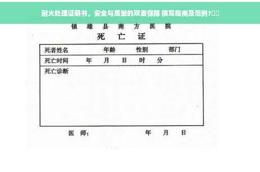 耐火处理证明书是保障安全与质量的双重保障,对于生产企业来说具有极其重要的意义,本文旨在帮助读者更好地了解和应用这一重要文件,在办理过程中,生产企业应严格遵守相关法规和规定,确保产品的耐火性能达标,为人们的生命财产安全保驾护航。