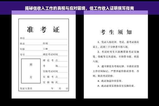 摘要:揭示低收入工作的真相,面对工作收入低的困境,首先要了解收入低的原因并寻求解决方案。可通过撰写工作收入低证明来应对挑战,证明中应包含收入状况、工作性质及个人努力等信息。积极寻找提高收入的方法和途径,如提升技能、寻找更有潜力的职业机会等。面对现实,积极应对,才能走出困境。