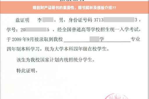 随着社会的进步和人们观念的开放,婚前财产证明逐渐受到广泛关注,这不仅是对个人财产权益的保障,更是对未来婚姻生活的理性规划与展望,本文将为您详细介绍婚前财产证明书的重要性,以及制定过程中需要注意的各个方面。