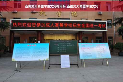 有本科文凭和专科文凭两种。西南交通大学希望学院是经国家教育部批准,西南交通大学举办、华西希望集团投资的全日制普通本科高等院校。学院位于四川省成都市金堂县学府大道。学院设有土木工程学院、商学院、轨道交通学院、外语系、基础部、思政部等教学单位,开办本专科专业43个,面向全国14个省市招生,现有在校学生20000余人。