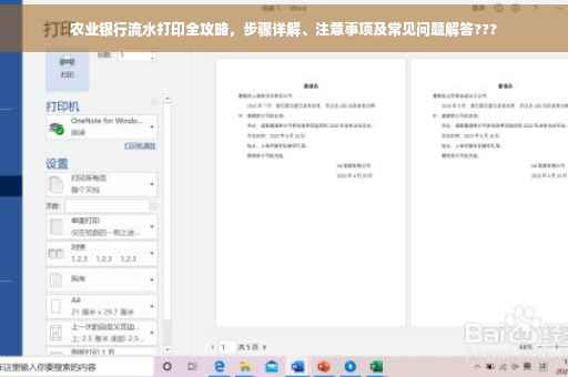 本文详细介绍了农业银行流水打印的步骤、注意事项以及解答了常见问题,在实际操作中,请务必按照本文所述进行操作,确保顺利完成流水打印,如遇任何问题,请及时联系农业银行工作人员寻求帮助,希望通过本文,大家能对农业银行流水打印有更全面的了解,为您的生活和工作带来便利。