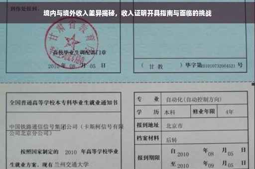 随着全球化的持续推动,越来越多的人选择走出国门,探索更广阔的世界,这其中,境外就业、学习或投资等成为许多人的选择,随之而来的是境内与境外收入证明的问题,本文将深入探讨这一主题,揭示不同经济环境下的收入差异及其所带来的挑战。