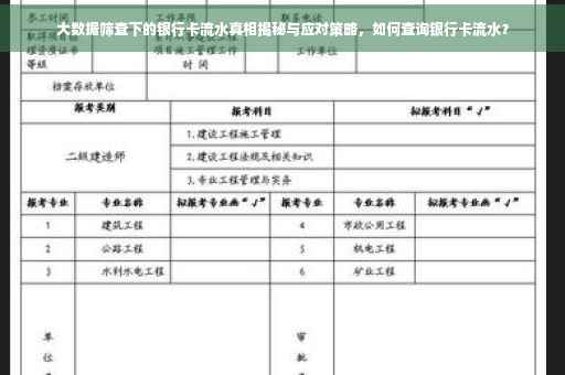 随着数字化时代的到来和科技的飞速发展,大数据技术在各行各业中得到了广泛应用,大数据筛查银行卡流水作为风险管理和信用评估的重要手段,逐渐受到关注,这一技术背后也存在一系列问题和争议,本文将深入探讨大数据筛查银行卡流水的概念、作用、背后真相及应对之策。