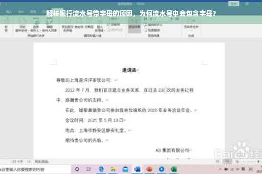 在金融交易的日常洪流中,银行流水号作为每一笔交易的独特标识,经常引起人们的关注,有时,我们会注意到其中包含了字母,这引发了人们的好奇和疑惑,为什么银行流水号中会带有字母呢?我们就一起来揭开这个秘密。