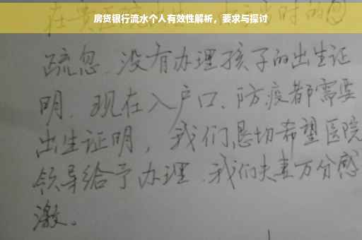 摘要:本文探讨了房贷银行流水个人的有效性,并询问了银行对于房贷流水是否有特定要求。文章指出,银行流水是评估个人房贷申请资格的重要因素之一,其有效性直接关系到贷款审批的结果。申请者需要了解银行的具体要求,并提供真实有效的银行流水记录,以增加贷款获批的机会。