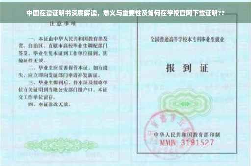 摘要:中国在读证明书是学生在校期间的重要证明文件,其背后蕴含着深刻的意义和重要性。该证明书可在学校官网下载,有效证明学生在校学习的事实、所学专业、入学时间等信息。这份证明对于学生在校期间的评优评先、奖学金申请、各类证书考试等方面具有关键作用,同时也是学生毕业后求职、升学的重要参考依据。中国在读证明书对于学生而言具有极高的价值和重要性。