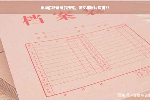 摘要:本篇文章将全面解析证明书及其格式,为读者提供详细指导。内容包括证明书的定义、作用、种类以及格式要求等。附上与证明书格式相关的范文图片以供参考。通过阅读本文,读者可以了解如何正确撰写证明书,并满足格式要求。
