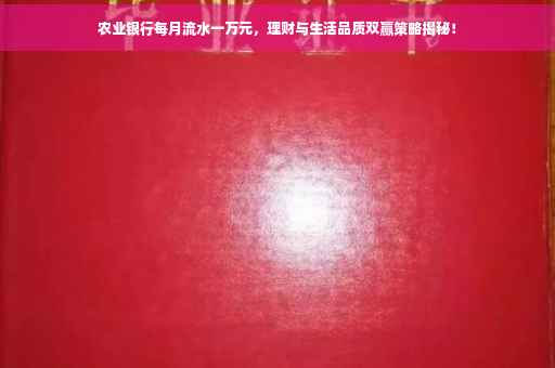 随着经济的发展和金融市场的繁荣,个人财务管理和理财规划受到越来越多人的关注,作为国有大型商业银行的农业银行,为广大客户提供优质的金融服务,助力实现个人财务目标,本文将围绕农业银行每月流水一万元这一主题,探讨如何通过合理的理财规划,实现财务自由与生活品质的提升。