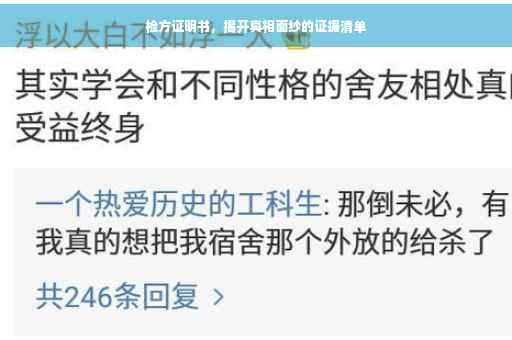摘要:检方证明书是一份揭示真相的重要文件,其中包含了检方收集的证据清单。这份清单是案件审理过程中至关重要的依据,能够帮助法庭了解案件事实,为公正判决提供有力支持。通过检方证据清单的呈现,真相的面纱得以揭开,案件的解决更加接近真相。