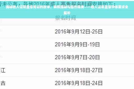 摘要:本文将揭示收入证明盖章背后的故事,探讨真相与实际操作指南。文章将介绍收入证明盖章的重要性,揭示其中存在的潜在问题和风险,同时提供字体要求等细节。阅读本文,您将了解如何正确操作收入证明盖章,避免不必要的麻烦。