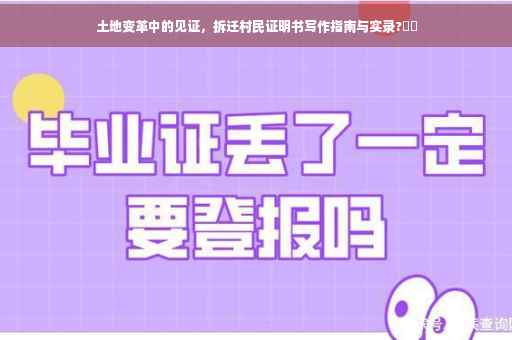 随着城市化进程的加速,拆迁已成为许多地区不可避免的现象,对于被拆迁的村民来说,这不仅是一次生活环境的改变,更是一次身份转变的重要时刻,本文将围绕拆迁村民证明书这一主题展开,通过深入剖析相关背景、意义、作用等方面,为读者呈现一场土地变革中的真实记录与见证。
