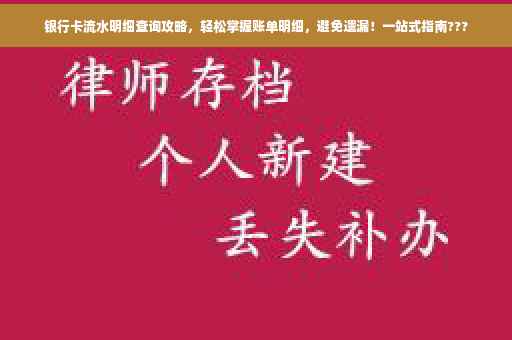 本文为您介绍了查询银行卡流水明细的多种途径和注意事项,希望您在掌握这些方法后,能更加便捷地查询银行卡流水明细,轻松掌握账单情况,在使用过程中,如遇任何问题,请及时联系银行客服寻求帮助,祝您用卡愉快!