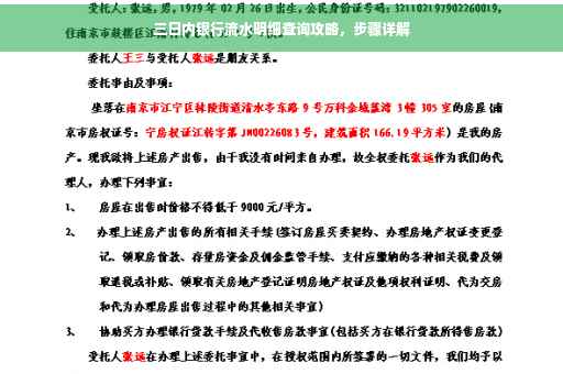 通过本文的介绍,相信大家对如何查询三天内的银行流水明细有了更详细的了解,在实际操作过程中,建议大家在查询前了解所查询银行的详细规定,以确保查询过程顺利进行,为了个人财务安全,请务必保护好个人信息,避免泄露敏感信息,希望大家能够充分利用银行流水明细,更好地管理个人财务和企业运营情况,如有更多疑问或需求,请随时咨询银行客服或专业人士。