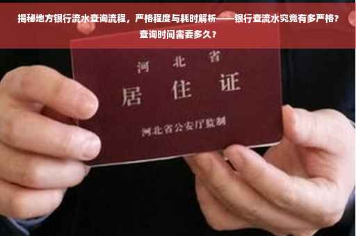 摘要:,,本文介绍了地方银行流水查询流程,分析了其严格程度与耗时。查询流程包括客户前往银行柜台或网上银行进行查询,提交相关身份证明材料。银行查流水的严格程度因银行政策而异,以确保客户信息安全。查询时间则因查询方式、银行工作效率等因素而有所不同,一般柜台查询当场可完成,网上银行查询则更为便捷迅速。整体而言,查询流程相对简单,耗时较短,客户可根据自身情况选择合适的方式进行查询。