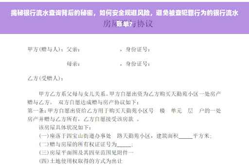 摘要:,,本文揭露了银行流水查询背后的秘密,并探讨了如何规避被查风险。提醒公众,任何试图规避银行流水账单的行为都是违法的,并可能涉及犯罪问题。建议公众遵守法律法规,正确使用银行账户,不进行任何违法活动,以确保个人财产安全和社会金融秩序的稳定。
