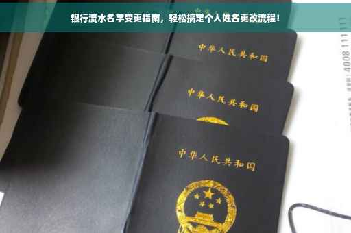 摘要:想要更改银行流水中的名字,可以按照以下步骤轻松搞定。联系银行客服了解具体流程和要求;准备相关证件,如身份证、户口本等证明身份的文件;前往银行柜台或网上银行进行申请;等待银行审核并更新流水信息。遵循这些步骤,即可顺利更改银行流水中的名字。