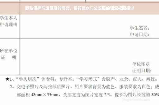 在要求提供银行流水的过程中,隐私保护与透明度成为一对矛盾,个人希望保护自己的隐私不被侵犯;公安局需要这些信息来维护公共安全,如何在两者之间找到一个平衡点,成为解决这一问题的关键。