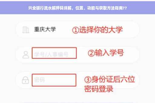 随着互联网金融的迅猛发展,银行业务日益繁忙,客户对于银行服务的需求也日益多样化,在这个过程中,兴业银行流水解押码作为一个重要的服务环节逐渐受到广泛关注,本文将详细介绍兴业银行流水解押码的位置、作用及获取方法,以帮助广大客户更好地理解和使用这一服务。