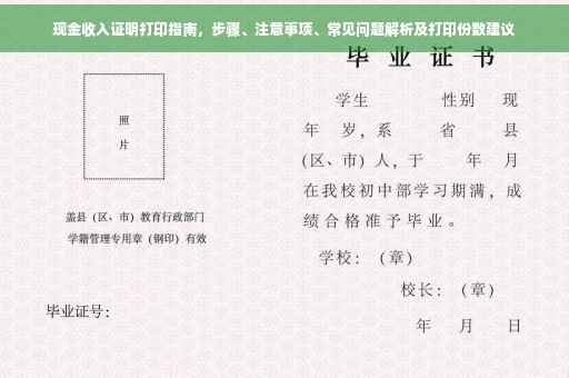 现金收入证明打印虽然看似简单,但其中也包含了许多细节和注意事项,本文详细介绍了现金收入证明打印的步骤、注意事项以及解决常见问题的办法,希望能够帮助读者顺利完成现金收入证明打印,在办理重要事项时,请务必确保现金收入证明的真实性和准确性,以保护自己的合法权益。