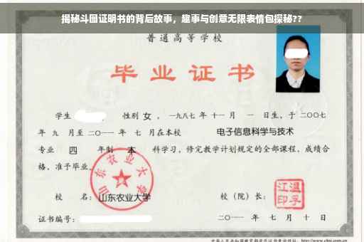 摘要:本文将为你揭示斗图证明书的背后故事,带你了解这一有趣现象的起源和发展。文章将探讨斗图证明书中的趣事和创意无限的表情包,展现其在沟通中的独特魅力。通过本文,你将领略斗图证明书背后的趣事与创意,感受这一文化现象的魅力。