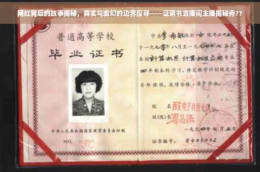 随着互联网的普及,直播行业迅速崛起,越来越多的人加入到这个行业中来,证明书直播间作为一股清流,以其真实、专业的特点吸引了大量粉丝的关注,本文将带您走进证明书直播间,揭秘网红背后的故事,探寻真实与虚幻的边界。