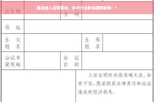 3、寻求亲友担保:在办理某些事务时,如租房等,你可以寻求亲友的担保,在这种情况下,收入证明可能不再是唯一的评估标准。