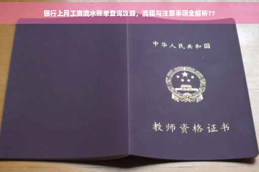 摘要:查询银行上月工资流水,一般可通过网银、手机银行或银行柜台进行。流程包括登录账户、进入账户明细、选择时间范围等步骤。注意事项包括保护个人隐私、确保网络环境安全等。查询时,需携带身份证和银行卡。本文全方位解析查询流程与注意事项,方便用户快速了解并操作。