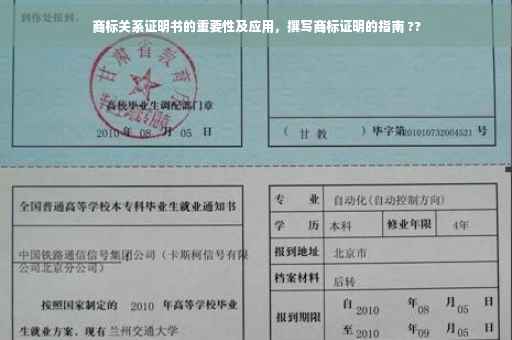 随着市场经济的发展,商标作为企业的重要资产和品牌形象载体,其重要性日益凸显,商标关系证明书作为证明商标权利归属、使用许可等法律关系的重要文件,其地位也日益重要,本文将详细介绍商标关系证明书的作用、内容、实际应用场景及注意事项,以帮助读者更好地理解和运用商标关系证明书。