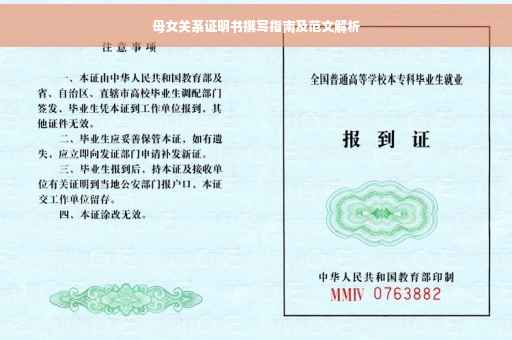 摘要:本文介绍了如何撰写母女关系证明书,并提供了范文解析。通过本文,读者可以了解到关系证明书的重要性和必要性,以及如何正确书写格式和内容。文章详细说明了需要包含的关键信息,如双方姓名、身份证号、关系描述等,并给出了具体的范文示例,帮助读者更好地理解如何撰写母女关系证明书。