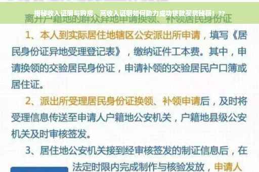 在当今社会,拥有一套自己的房子已成为许多人的梦想和目标,购房过程中,收入证明作为贷款的重要依据之一,往往成为制约许多人购房的关键因素,如何巧妙利用高收入证明成功贷款买房?本文将为您详细解读收入证明的重要性及其在购房过程中的作用,同时分享一些建议和注意事项,助您顺利实现购房梦想。