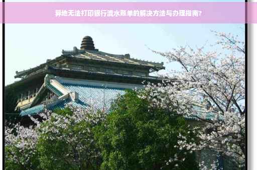 摘要:对于异地无法打印银行流水账单的问题,您不必过于担心。可以通过网上银行、手机银行APP或者联系银行客服进行查询和打印。也可以选择前往就近的银行网点办理相关手续。本文详细解释了各种解决方案的具体操作步骤和注意事项,帮助您轻松解决异地无法打印银行流水账单的困扰。
