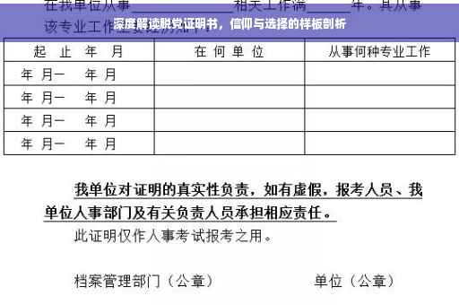 摘要:脱党证明书是一份关于个人信仰与选择的深度剖析报告。它详细记录了个人离开某一政党或组织的原因和过程,并对自己的信仰和价值观进行了反思和审视。这份证明样板提供了一个范例,让人们更加清晰地认识到个人选择的重要性以及信仰的坚定性。