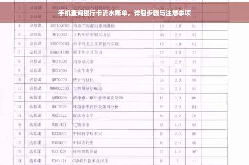 通过本文的介绍,相信您已经掌握了用手机查银行卡流水的方法及注意事项,在实际操作中,请注意保护个人信息,确保网络安全,如遇问题,请及时联系银行客服,建议您了解更多的金融知识和手机银行功能,以便更好地管理您的财务生活。