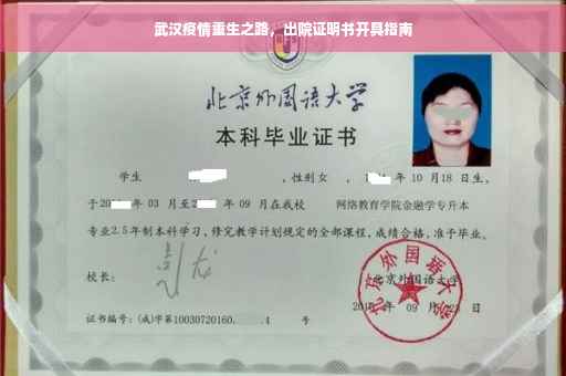 摘要:在疫情之下,武汉出院证明书是患者康复的重要证明。该证明书需在武汉当地的医疗机构开具,表明患者已康复并符合出院标准。这是患者经历疫情重生之路的重要凭证,也体现了医疗系统的努力与成果。具体开具地点可咨询就诊医院或相关部门。