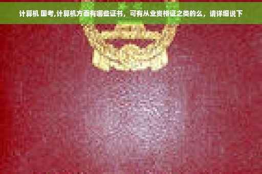 计算机在中国目前有三种从业资格证书,一类是操作证书,由劳动部门颁发,可通过各种社会培训机构参训后报名参加考试,如一级、二级和普通操作证书;二类是专业技术证书,由工信部组织考试,各省颁发证书,直接网上报名参加考试,分初级、中级、高级,如程序员、系统分析师、信息系统项目管理师、构架师等证书;三类是由专业信息公司组织专门的实用技术考试,颁发专业从业资格证书,如西门子交换机维护工程师、ORACLE数据库维护工程师、华为路由器售后服务工程师等证书。