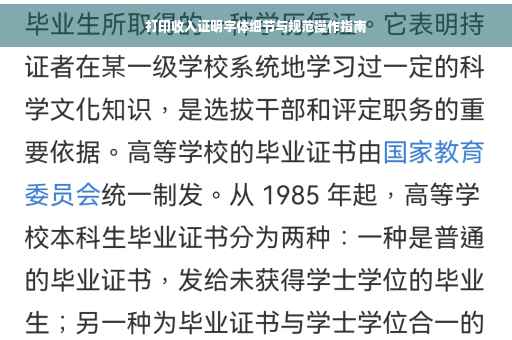 摘要:,,关于打印收入证明字体需要注意的细节与规范操作指南,确保在打印收入证明时遵循正确的字体大小和格式。使用合适的字体,确保清晰易读,并遵循企业或机构的标准规范。注意细节,如字体类型、字号大小、行距等,以确保文档的正式性和准确性。遵循规范操作,避免因字体问题而影响收入证明的有效性。