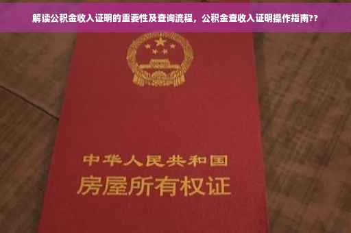 公积金收入证明是证明个人收入状况的重要文件,对于申请贷款、信用卡等金融业务具有关键作用,本文将详细解读公积金收入证明的重要性,并介绍查询流程,帮助读者更好地了解和使用公积金收入证明。
