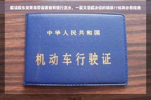摘要:关于股东变更是否需要查看银行流水的问题,本文为你解读疑惑。在股东变更过程中,查看银行流水并非绝对必要,但可作为重要参考依据,以确认公司财务状况及股东出资情况。也需注意其他相关文件和手续的真实性。本文旨在为读者提供清晰指导,帮助理解股东变更过程中的注意事项。