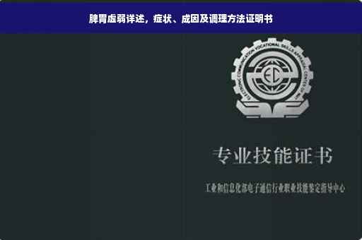 摘要:,,本证明书旨在揭示脾胃虚弱的症状、原因及调理方法。脾胃虚弱可能出现消化不良、食欲不振、腹胀腹泻等症状。其原因可能与饮食不规律、过度劳累、情绪压力等有关。为调理脾胃虚弱,建议规律饮食,避免过度劳累,保持心情愉悦,适当进行运动锻炼。本证明提供专业诊断,以帮助患者了解自身状况,采取合适措施改善脾胃健康。
