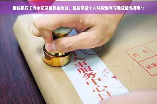 摘要:本文将为你揭示查询银行卡流水记录的全攻略,教你如何轻松掌握个人财务动向。从查询前的准备工作到具体查询步骤,再到获取流水记录后的注意事项,全方位解析银行卡流水记录查询过程。让你轻松掌握查询银行卡全部流水记录明细的技巧,实现个人财务管理的便捷高效。