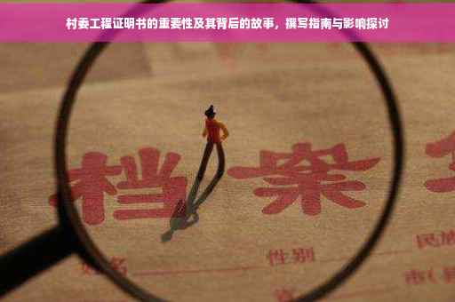 村委工程证明书背后蕴含着许多真实的故事,这些故事反映了农村发展的艰辛与努力,某村为了改善村民的饮水问题,决定修建一座水塔,在工程建设过程中,村委会积极协调各方资源,确保工程的顺利进行,当水塔建成后,村委会及时发放了工程证明书,证明了这一工程符合政策要求,质量达标,这不仅增强了村民的信心,还为该村的经济发展注入了新的活力,通过这个例子,我们可以看到村委工程证明书在工程建设过程中的重要作用。