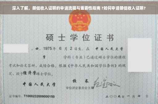 摘要:本文将探讨册低收入证明的申请流程和重要性。通过深入了解,你将明白为何这一证明对于个人和机构都至关重要。本文将指导你如何正确申请册低收入证明,包括准备所需材料、填写申请表格等步骤。还将强调收入证明在求职、贷款、社会福利申请等方面的关键作用。让我们一起了解如何开具册低收入证明及其重要性。