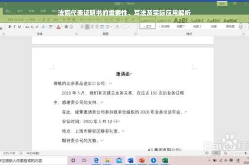 在当今社会,随着法治建设的不断完善,法院代表证明书在人们日常生活中的重要性日益凸显,法院代表证明书是一种具有法律效力的文件,主要用于证明个人或组织在诉讼案件中的身份和地位,本文将全面介绍法院代表证明书的作用、实际应用场景、申请流程以及注意事项,并辅以案例分析和常见问题解答,以帮助读者更好地了解和运用这一法律工具。