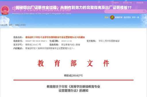 摘要:本文将为您详细解析管出厂证明书的全过程,从制作到效力。我们将介绍出厂证明书的制作背景、模板内容,以及其在产品出厂过程中的重要作用。通过阅读本文,您将了解如何规范制作出厂证明书,确保其法律效力,为产品出厂提供有力保障。